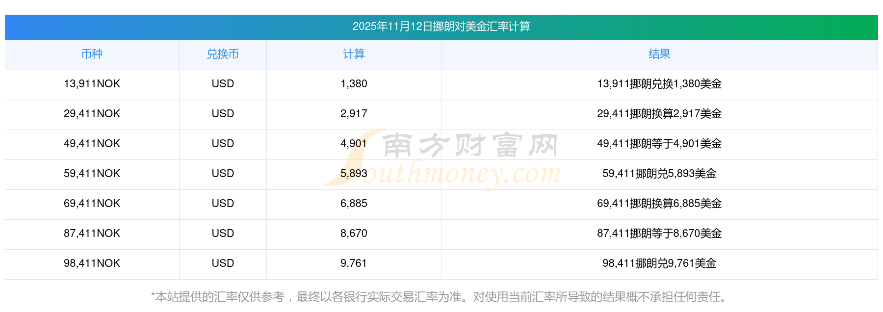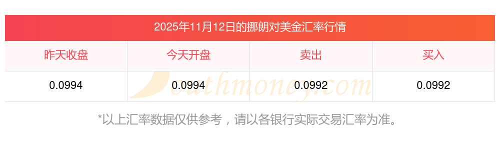 南方財富網為您提供挪朗對美金匯率最新價格詳情。