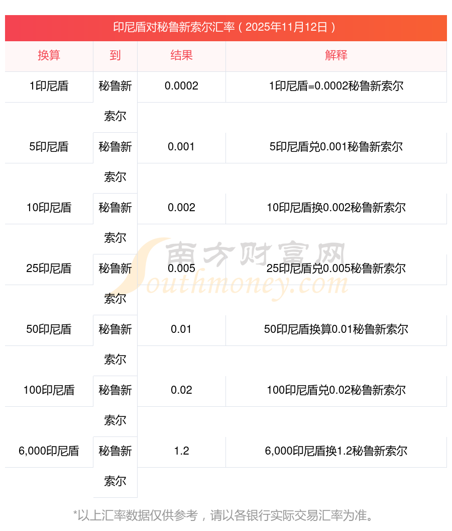 秘魯新索爾匯率查詢_今天印尼盾換秘魯新索爾匯率報價?2025/11/12