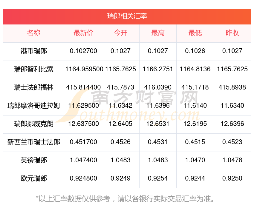 2025年11月13日瑞郎相關(guān)匯率查詢