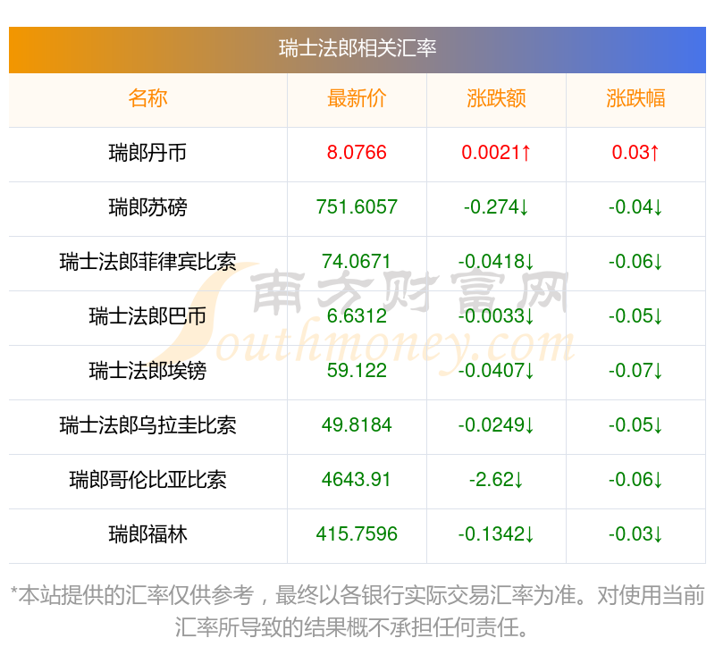 2025年11月13日瑞士法郎相關(guān)匯率查詢