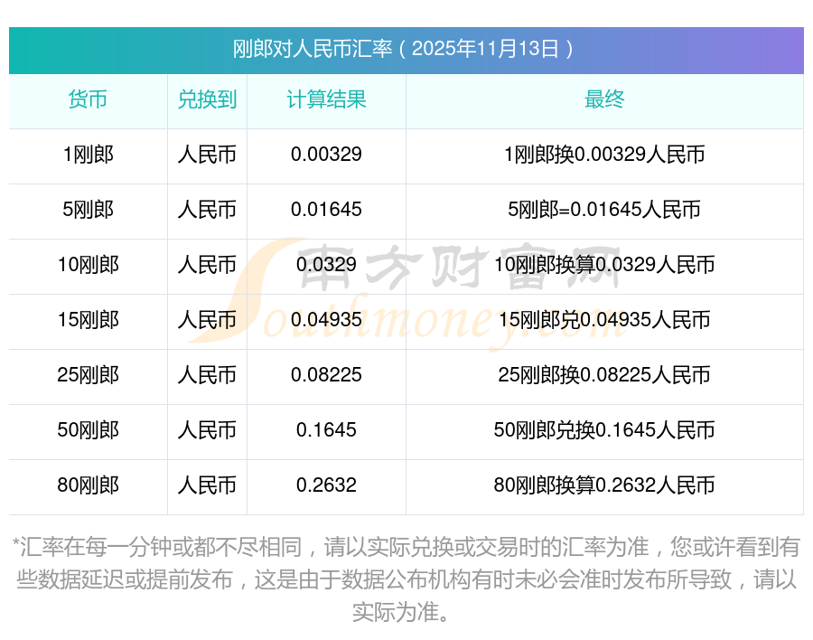 2025年11月13日匯率換算:59剛郎對人民幣匯率是多少