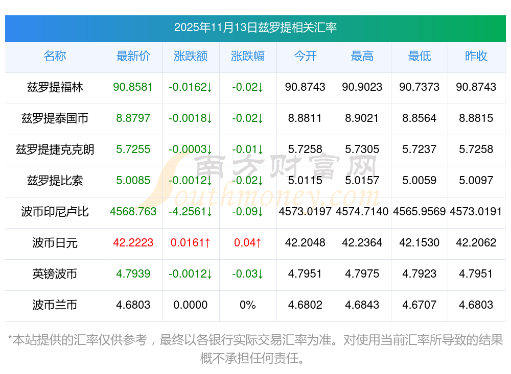 2025年11月13日茲羅提相關(guān)匯率查詢