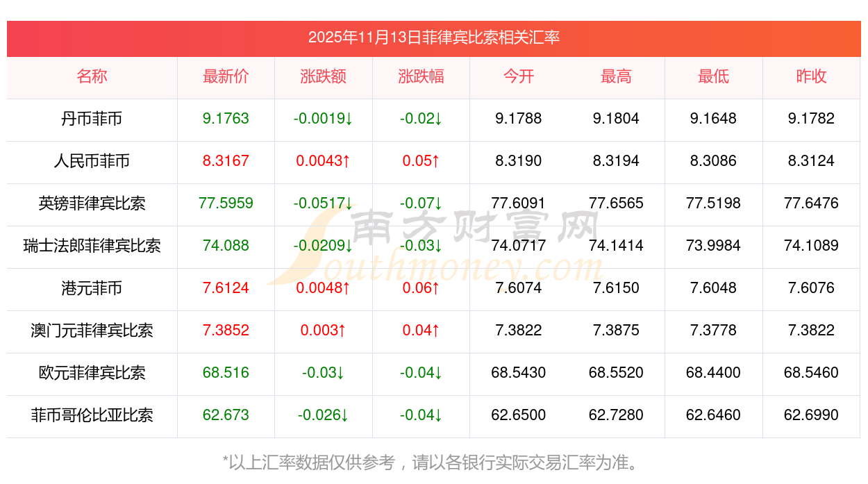 2025年11月13日菲律賓比索相關(guān)匯率查詢