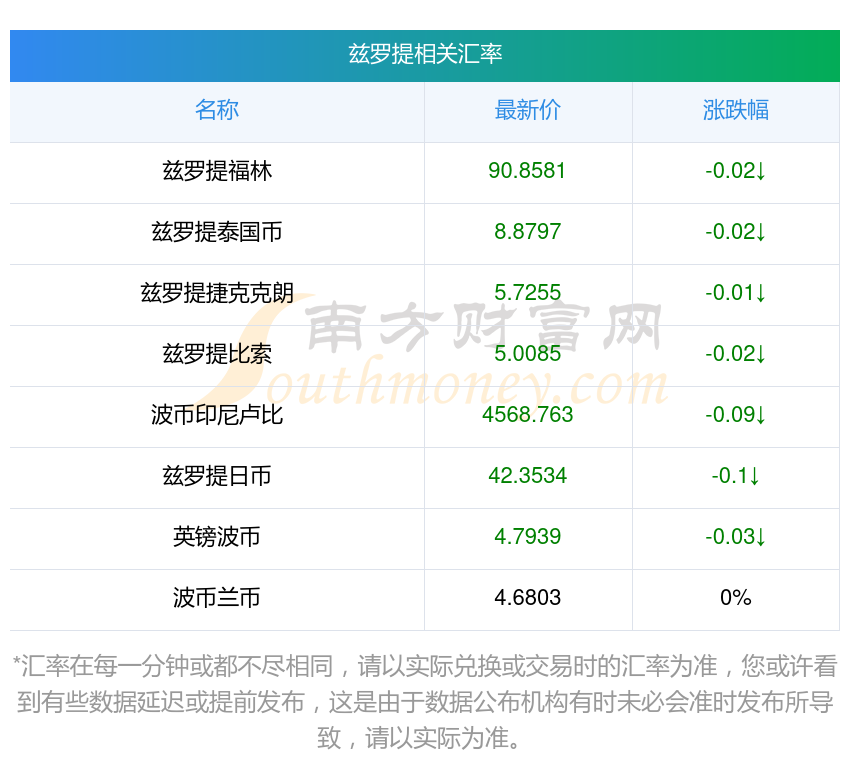 南方財富網為您提供茲羅提對日幣匯率最新價格詳情。