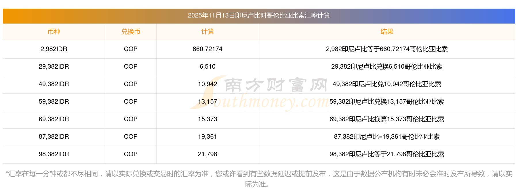 今天匯率更新!2025年11月13日68印尼盧比兌換哥倫比亞比索是多少?