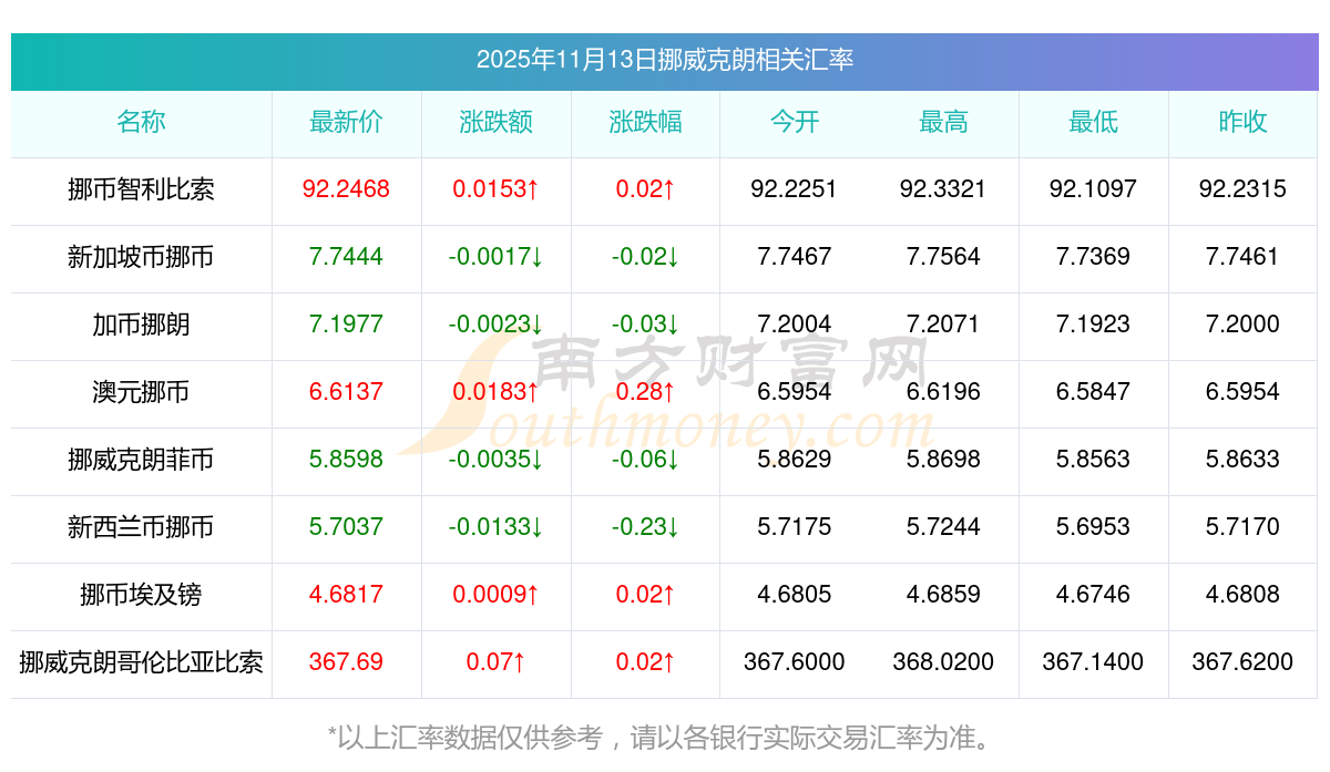 2025年11月13日挪威克朗相關(guān)匯率查詢