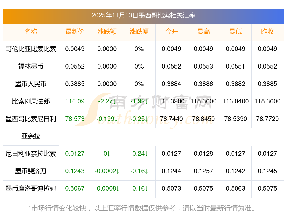2025年11月13日墨西哥比索相關匯率查詢