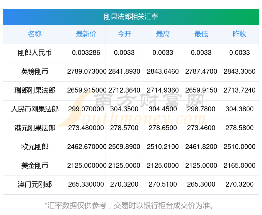 南方財(cái)富網(wǎng)為您提供剛果法郎對(duì)墨西哥比索匯率最新價(jià)格詳情。