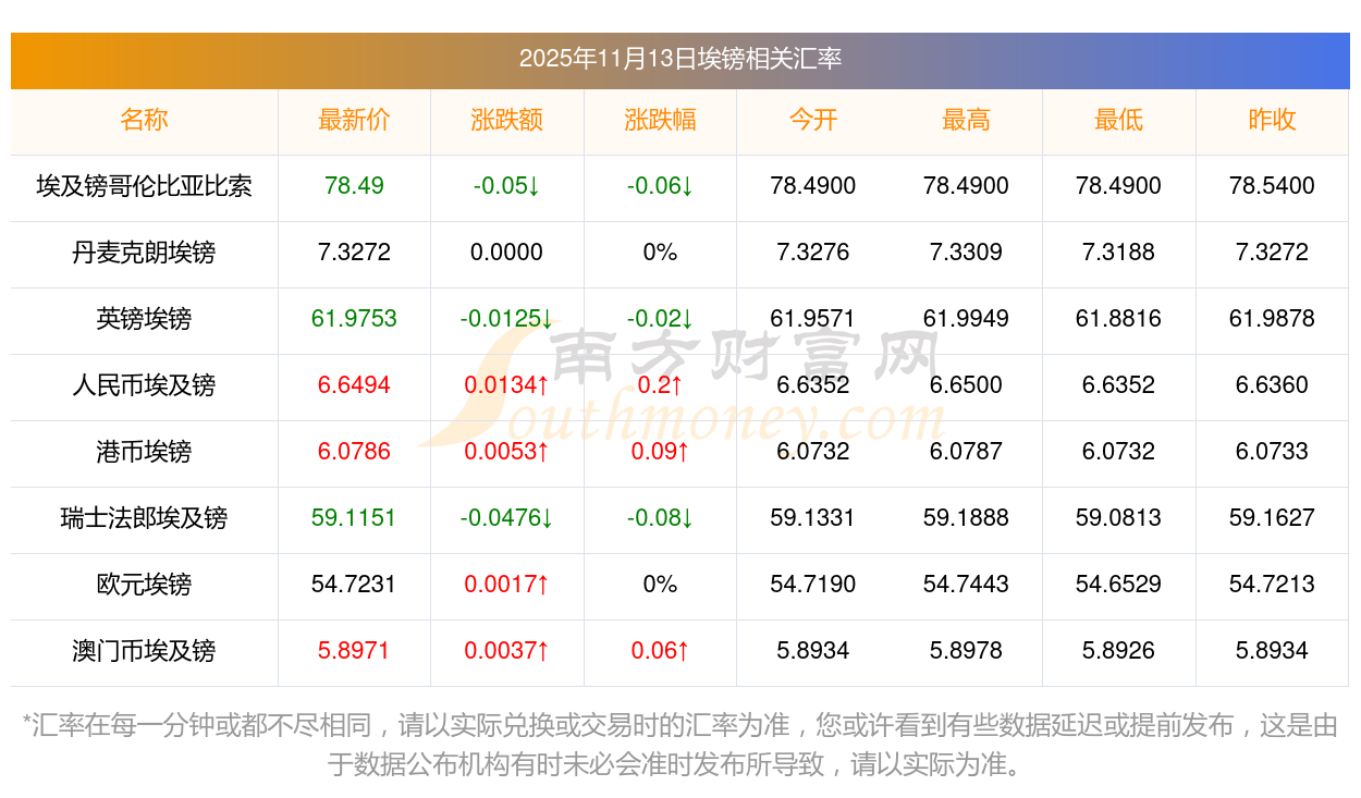 2025年11月13日埃鎊相關(guān)匯率查詢
