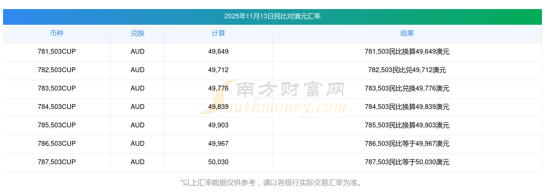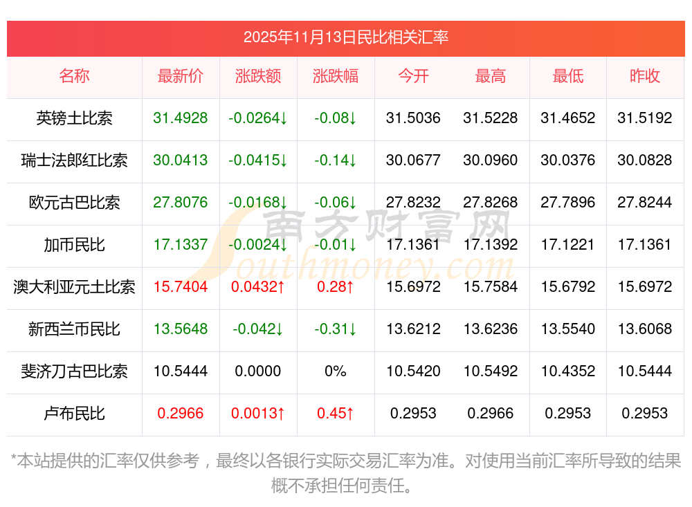 今天民比外匯價格 今日民比對澳元匯率一覽表2025/11/13