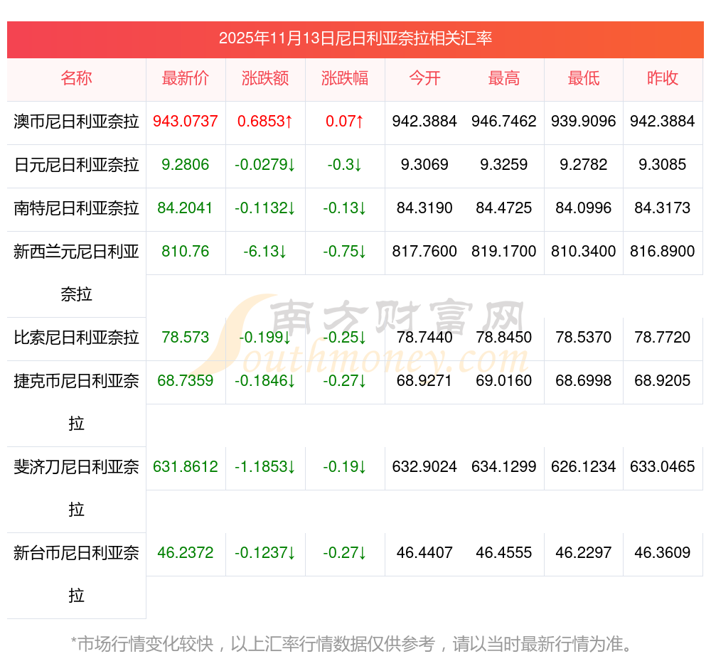 2025年11月13日尼日利亞奈拉相關(guān)匯率查詢
