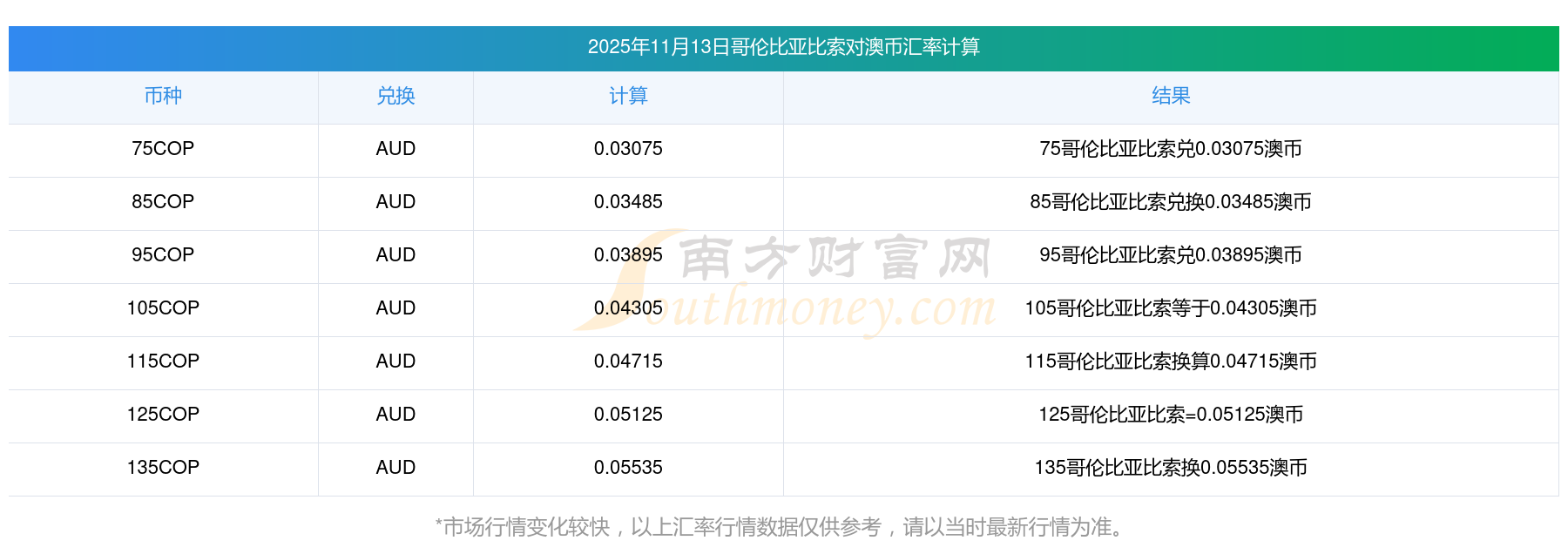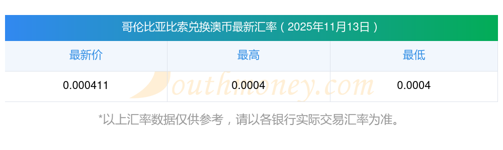 今天匯率表 140哥倫比亞比索兌澳幣匯率是多少(2025年11月13日)