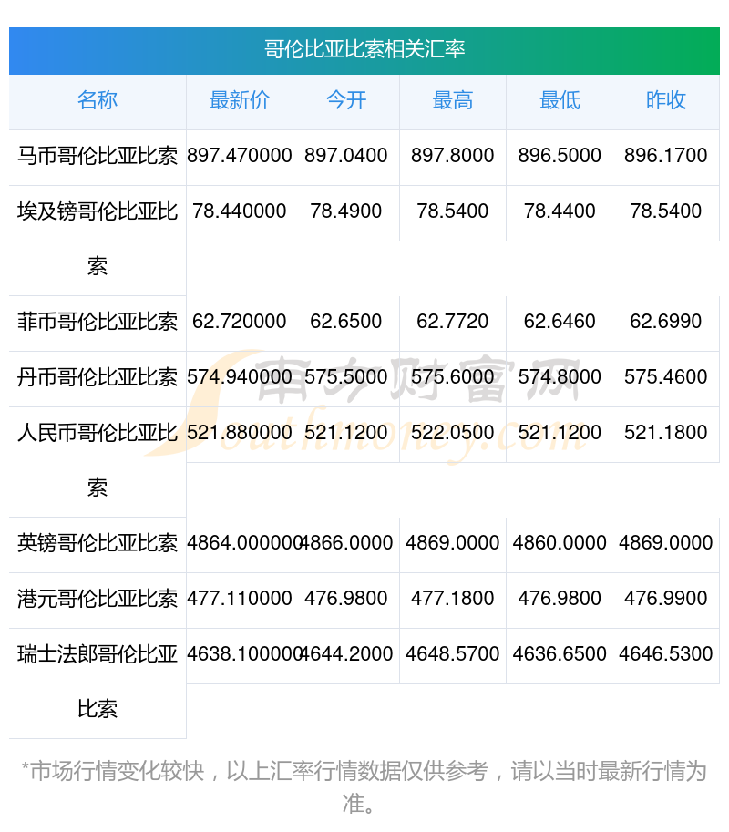 2025年11月13日哥倫比亞比索相關(guān)匯率查詢(xún)