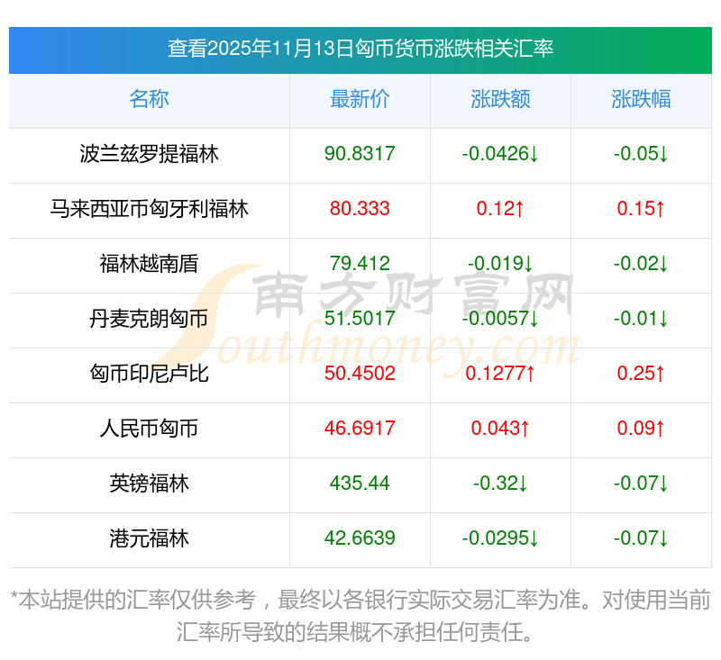 根據(jù)2025年11月13日匯率計算,HUF兌換CZK匯率最新價0.063032:今日開價0.0630,昨日收價0.0630,最高價0.0631,最低價0.0630。