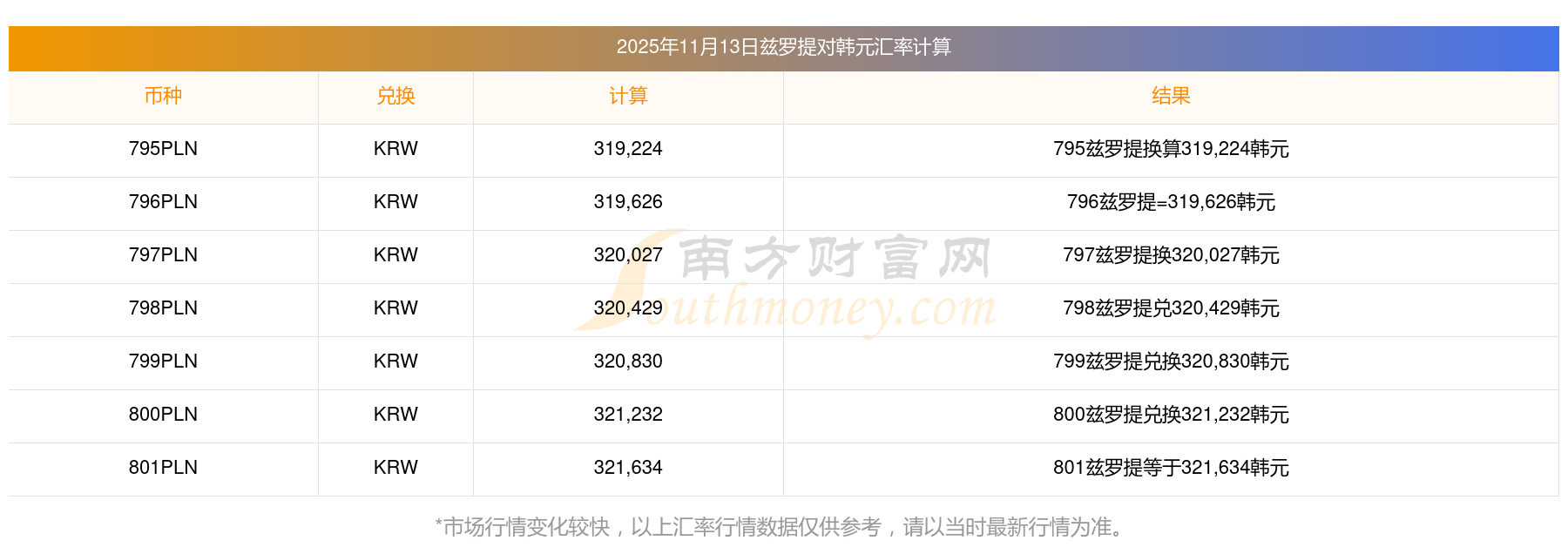 2025年11月13日8茲羅提計(jì)算韓元等于多少?