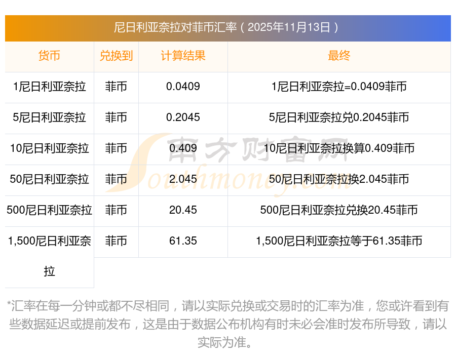 現(xiàn)47尼日利亞奈拉兌換菲幣結(jié)匯行情 尼日利亞奈拉匯率報價查詢11月13日
