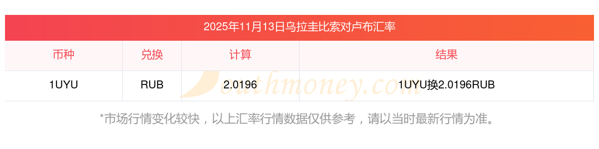 11月13日今天烏拉圭比索對(duì)盧布匯率一覽
