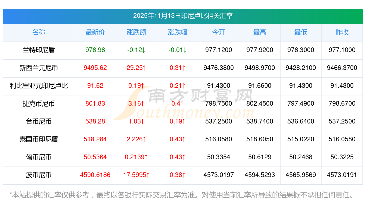 2025年11月13日印尼盧比相關(guān)匯率查詢