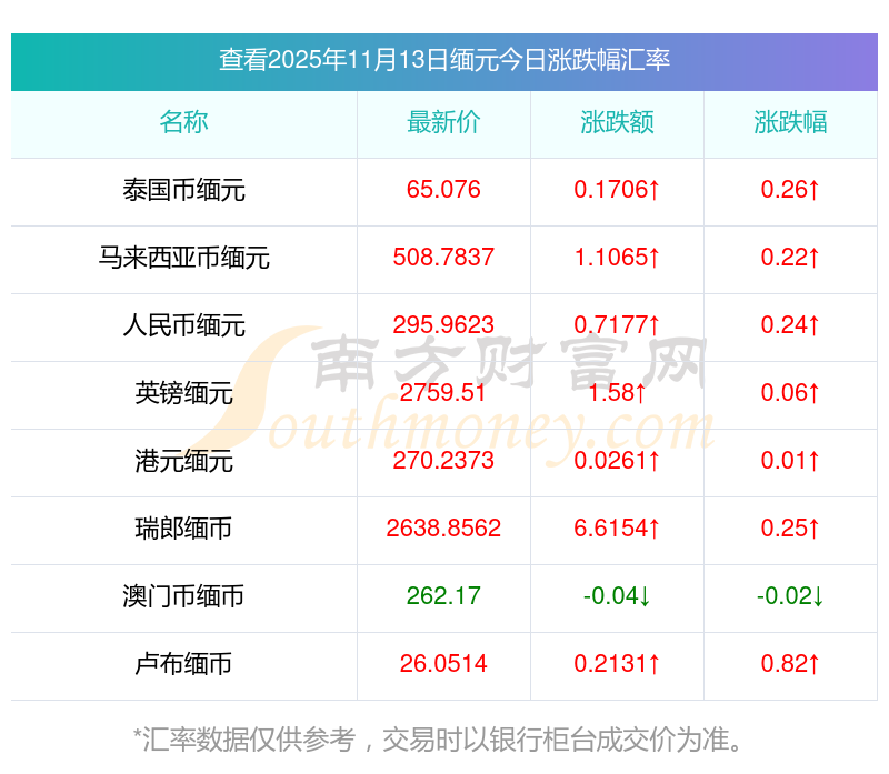 19緬元對瑞郎今天匯率一覽2025年11月13日