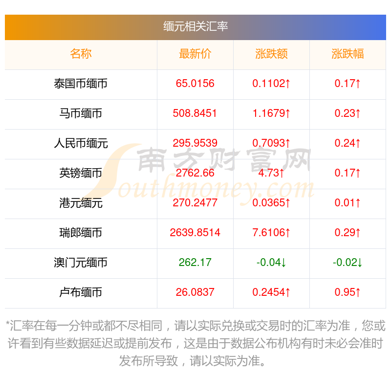 南方財富網(wǎng)為您提供緬元對南非蘭特匯率最新價格詳情。