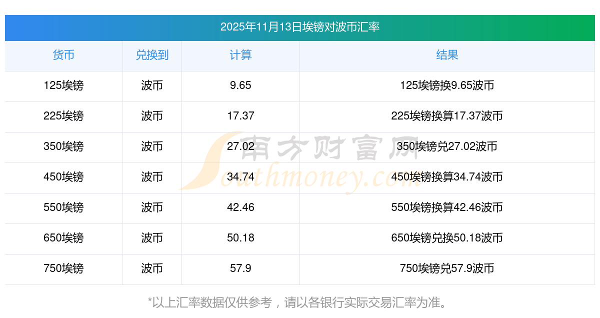今日埃鎊兌波幣匯率_實(shí)時(shí)匯率查詢11-13
