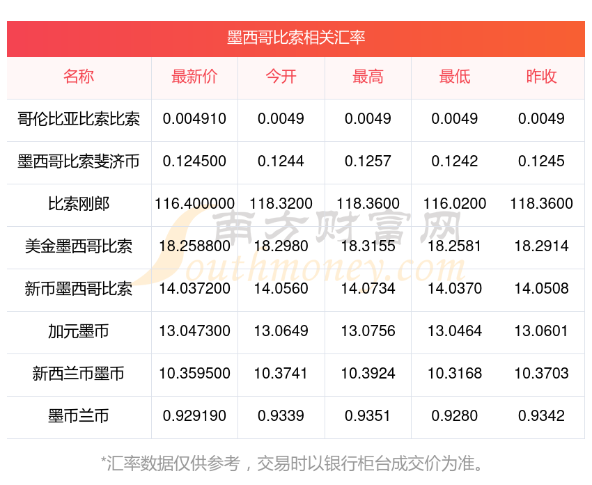 2025年11月13日墨西哥比索相關(guān)匯率查詢