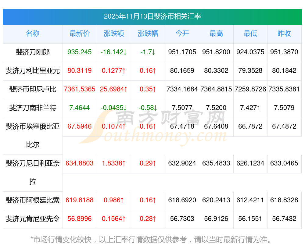 2025年11月13日斐濟幣相關(guān)匯率查詢