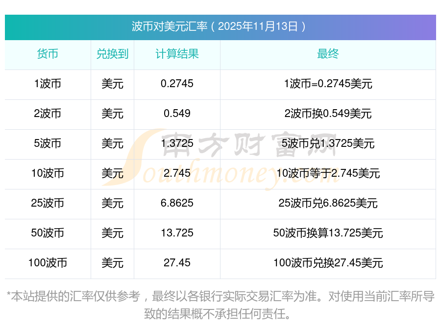 2025年11月13日3波幣計(jì)算美元等于多少?