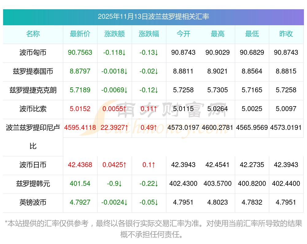 2025年11月13日波蘭茲羅提相關(guān)匯率查詢