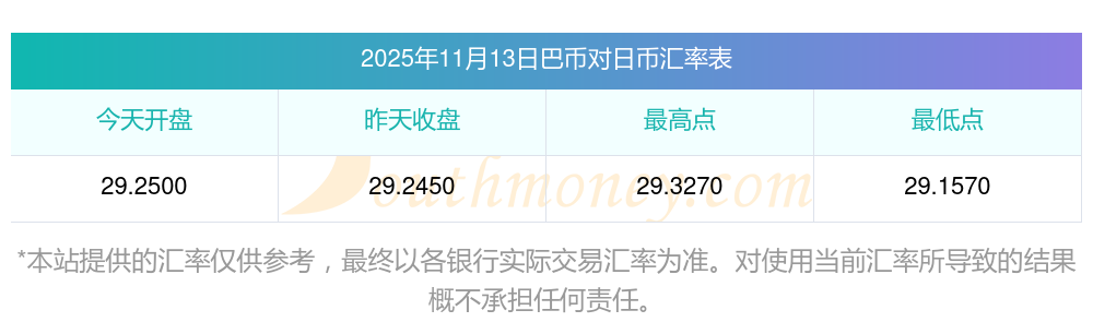 2025年11月13日巴幣與日幣的兌換匯率計(jì)算如下: