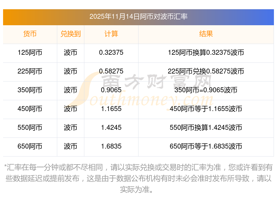 今天阿幣兌換波幣多少_不同貨幣兌換比例查詢(11月14日)