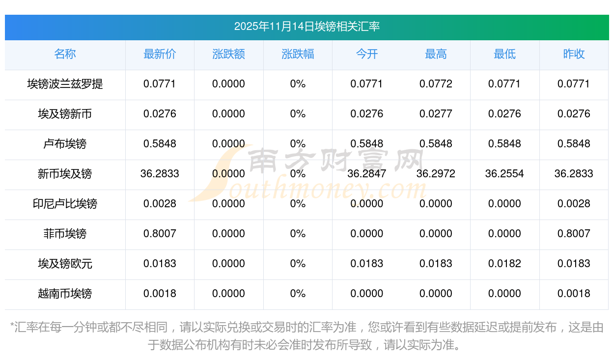 2025年11月14日埃鎊相關(guān)匯率查詢