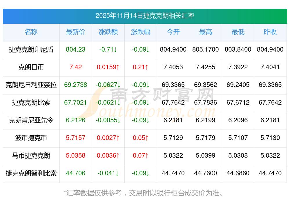 今日實(shí)時(shí)匯率 | 外幣捷克克朗換比索匯率多少? 2025-11-14