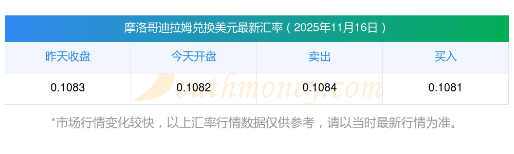 1摩洛哥迪拉姆等于多少美元?2025-11-16
