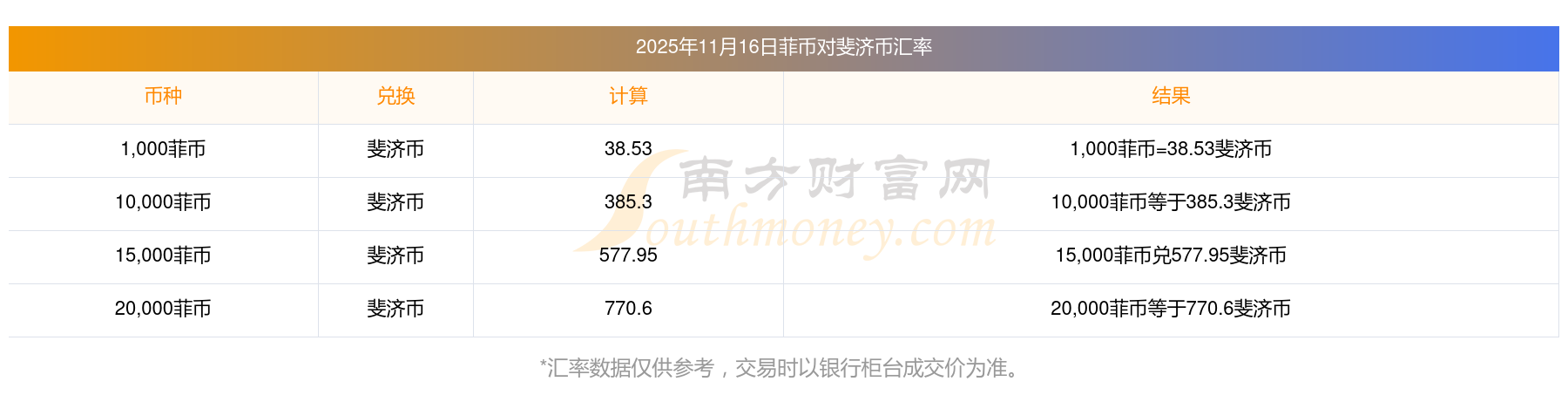 南方財富網(wǎng)為您提供菲幣兌換斐濟幣匯率最新價格詳情。