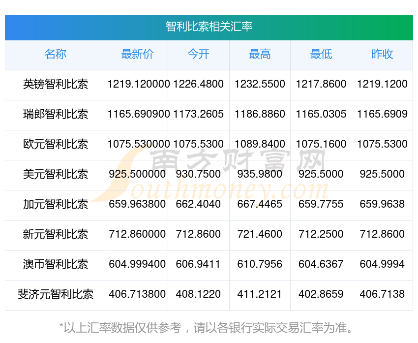 南方財富網(wǎng)為您提供智利比索對日元匯率最新價格詳情。