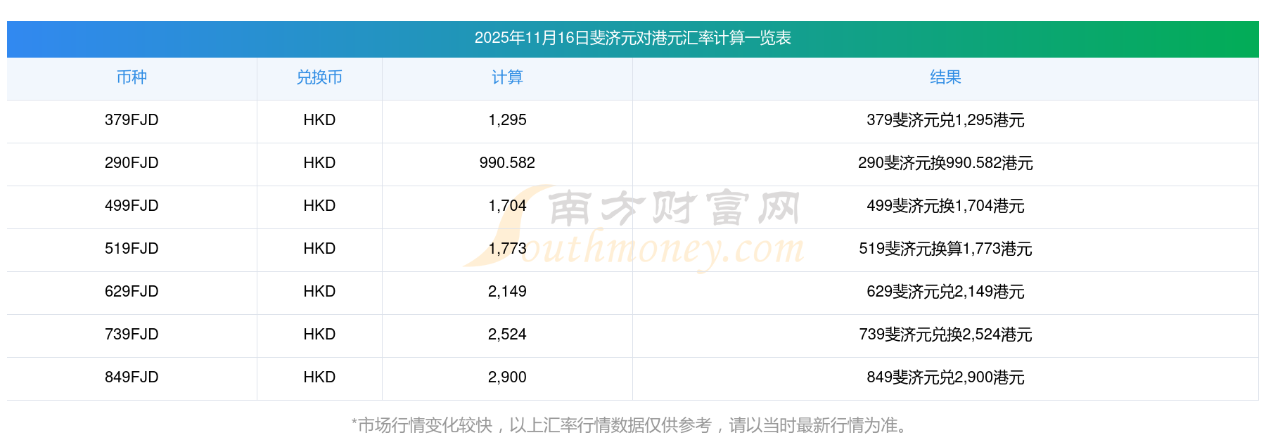 2025年11月16日15斐濟(jì)元計算港元等于多少?