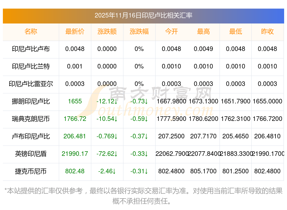 2025年11月16日印尼盧比相關(guān)匯率查詢