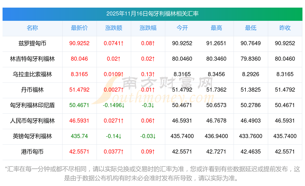 2025年11月16日匈牙利福林相關(guān)匯率查詢