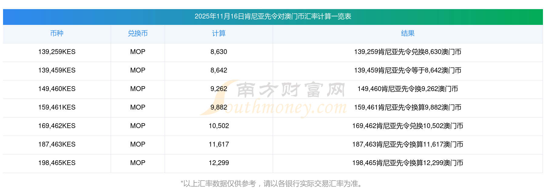 南方財(cái)富網(wǎng)為您提供肯尼亞先令對澳門幣匯率最新價(jià)格詳情。