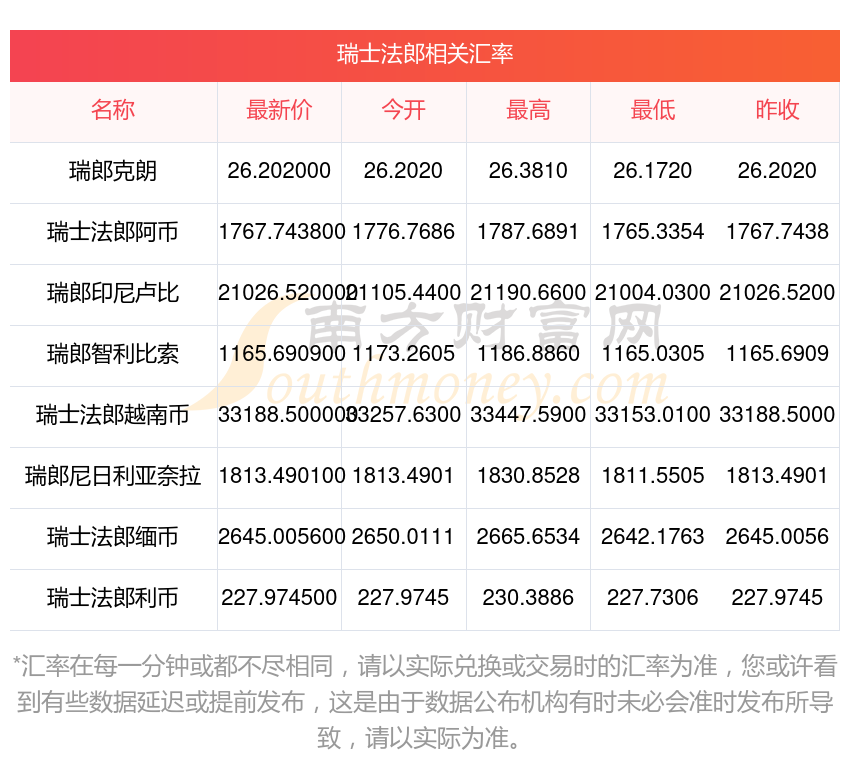 南方財(cái)富網(wǎng)為您提供瑞士法郎對(duì)利幣匯率最新價(jià)格詳情。