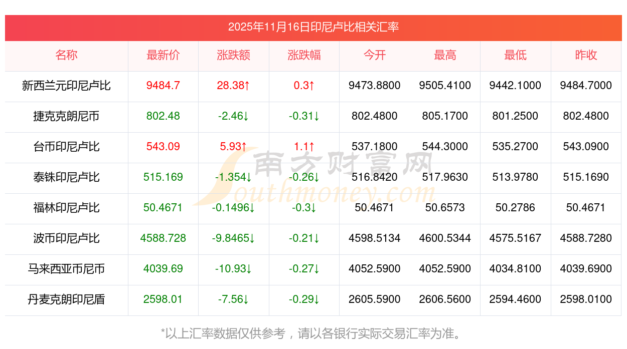 2025年11月16日印尼盧比相關(guān)匯率查詢