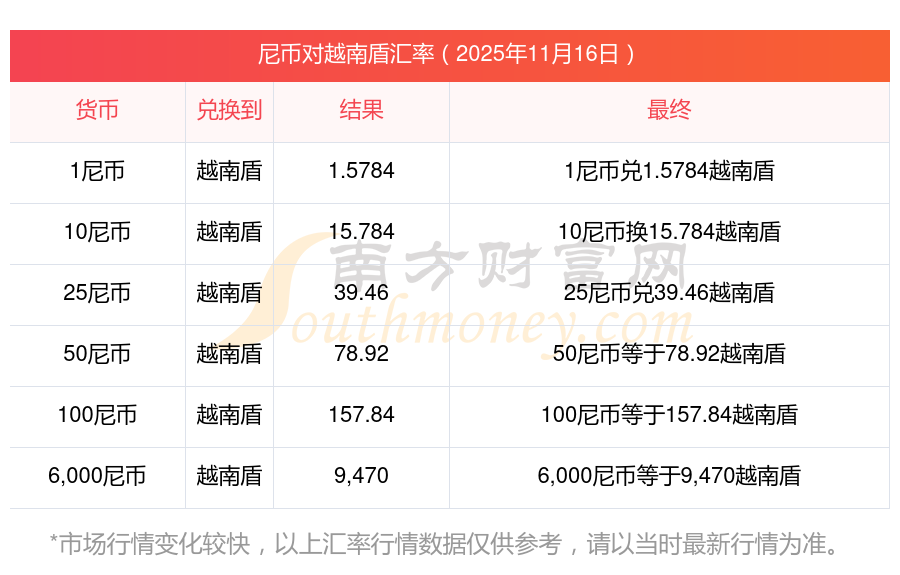 實(shí)時(shí)匯率_今日100尼幣換越南盾是多少?2025-11-16