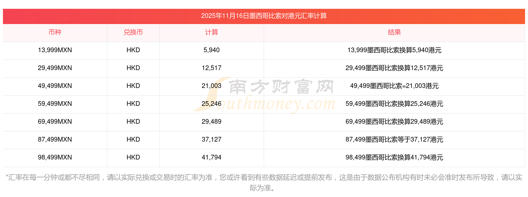 2025年11月16日5墨西哥比索計(jì)算港元等于多少?