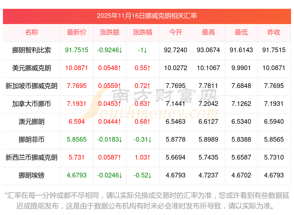 2025年11月16日挪威克朗相關(guān)匯率查詢