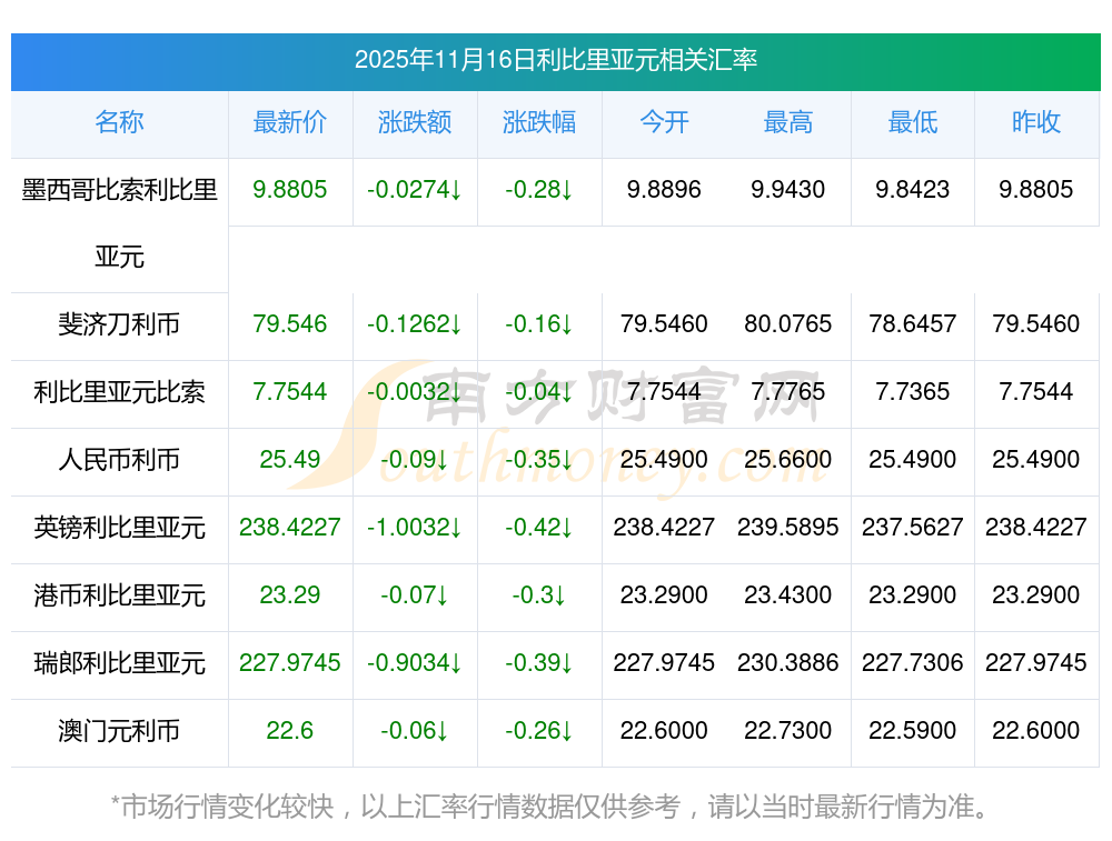 2025年11月16日利比里亞元相關(guān)匯率查詢