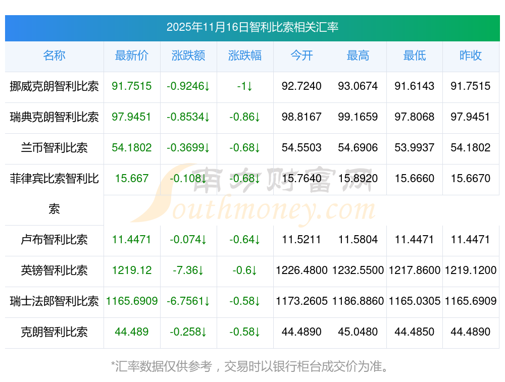 南方財富網(wǎng)為您提供智利比索對英鎊匯率最新價格詳情。