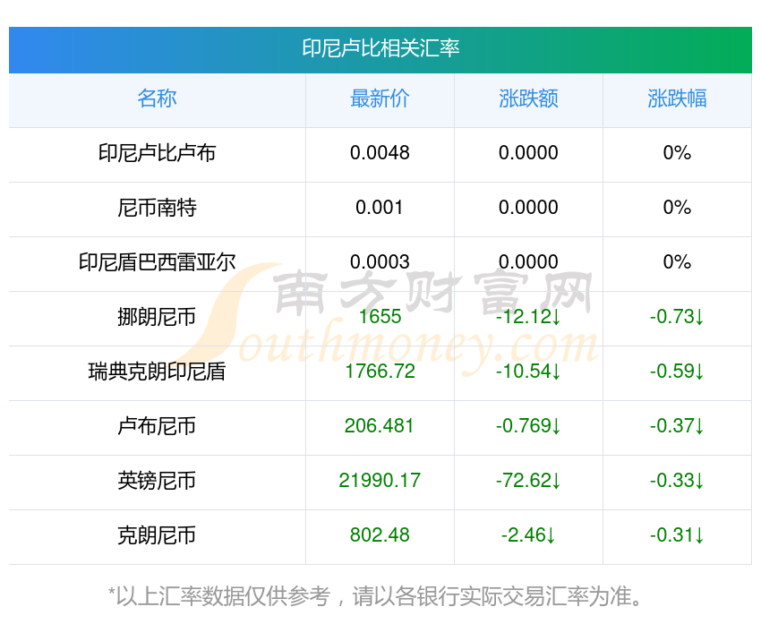 南方財富網(wǎng)為您提供印尼盧比對剛郎匯率最新價格詳情。