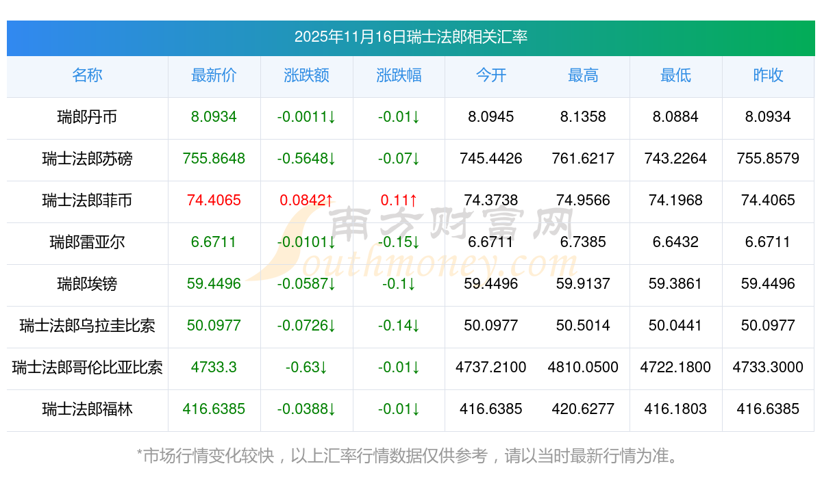 南方財富網(wǎng)為您提供瑞士法郎對加拿大幣匯率最新價格詳情。