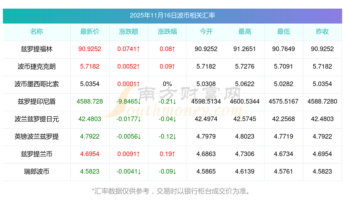 匯率在每一分鐘或都不盡相同,請以實際兌換或交易時的匯率為準(zhǔn),您或許看到有些數(shù)據(jù)延遲或提前發(fā)布,這是由于數(shù)據(jù)公布機構(gòu)有時未必會準(zhǔn)時發(fā)布所導(dǎo)致,請以實際為準(zhǔn)。